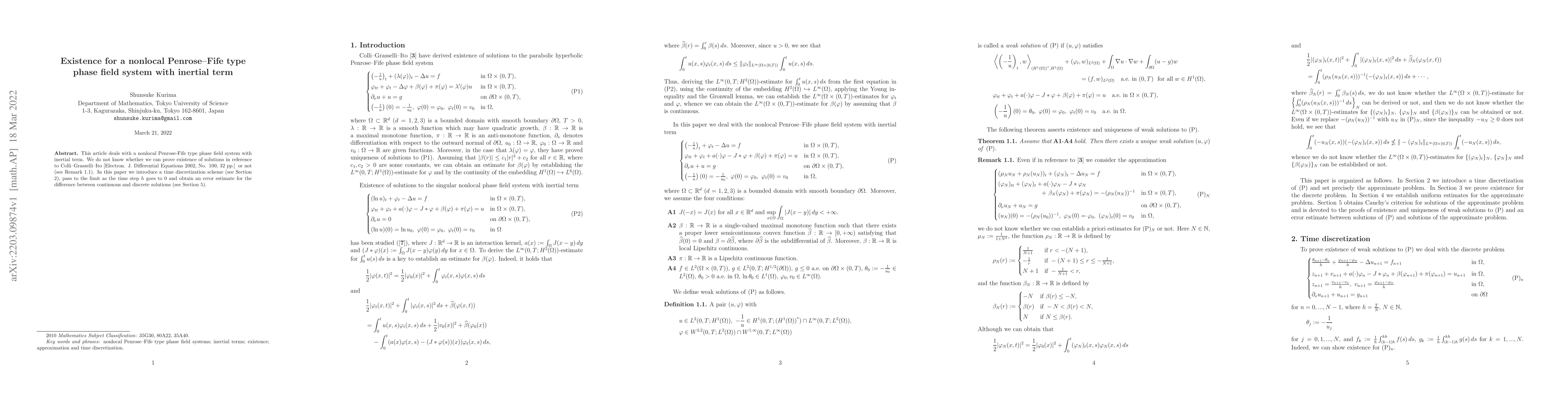 This paper investigates the existence of solutions for a nonlocal Penrose-Fife type phase field system with an inertial term, introducing a time discretization scheme to prove its validity.