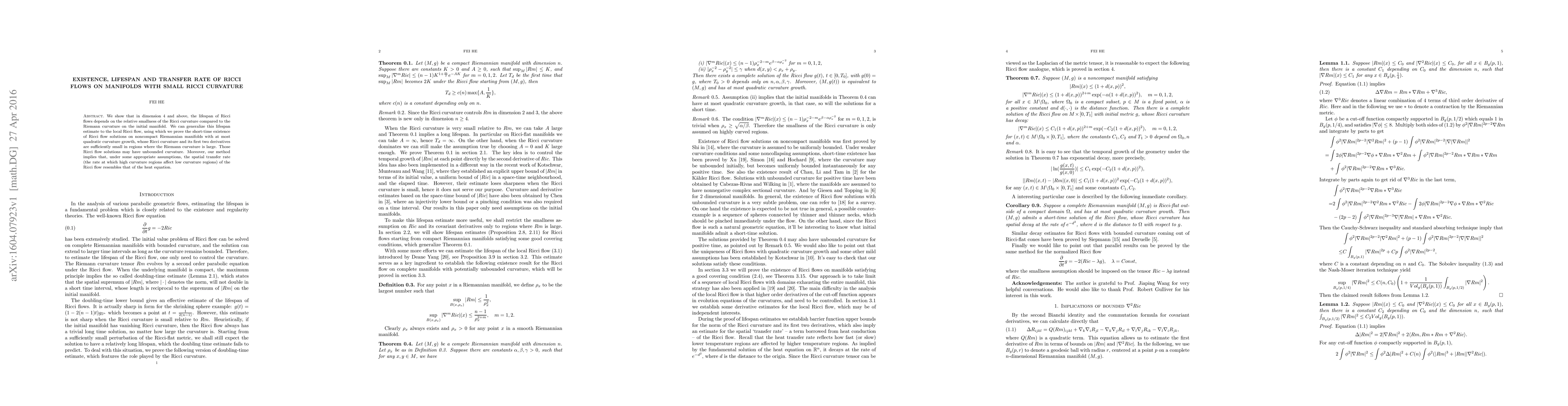 This paper demonstrates that the lifespan of Ricci flows in dimensions 4 and above is influenced by the relative smallness of Ricci curvature compared to Riemann curvature on the initial manifold. The authors also prove the short-time existence of Ricci flow on noncompact manifolds with controlled curvature growth, and show that the spatial transfer rate of Ricci flows resembles that of the heat equation under certain conditions.