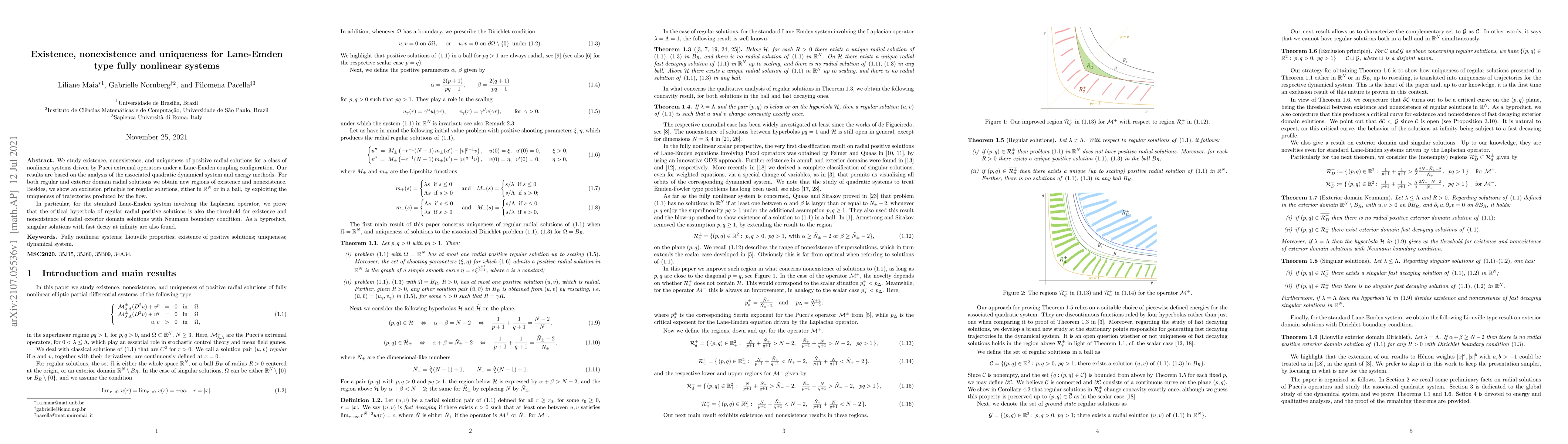 This paper investigates the existence, nonexistence, and uniqueness of positive radial solutions for nonlinear systems using Pucci extremal operators and Lane-Emden coupling. It employs dynamical systems analysis and energy methods to establish new regions for regular and exterior domain solutions, and finds a critical threshold for the existence of radial exterior solutions.