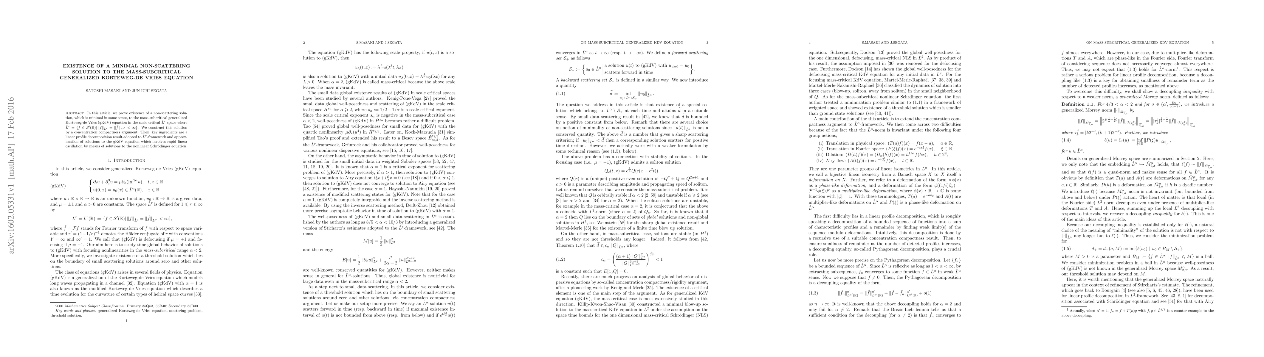 This paper proves the existence of a minimal non-scattering solution to the mass-subcritical generalized Korteweg-de Vries equation in the scale critical L^r space, utilizing a concentration compactness argument, linear profile decomposition, and approximations involving solutions to the nonlinear Schrödinger equation.