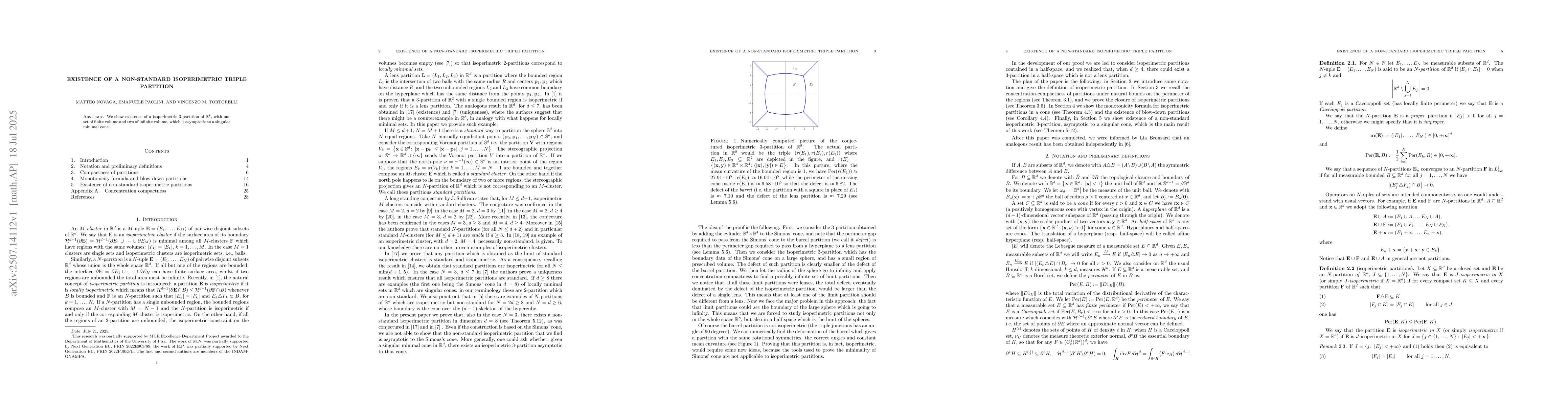 We show existence of a isoperimetric $3$-partition of $\mathbb R^8$, with one set of finite volume and two of infinite volume, which is asymptotic to a singular minimal cone.