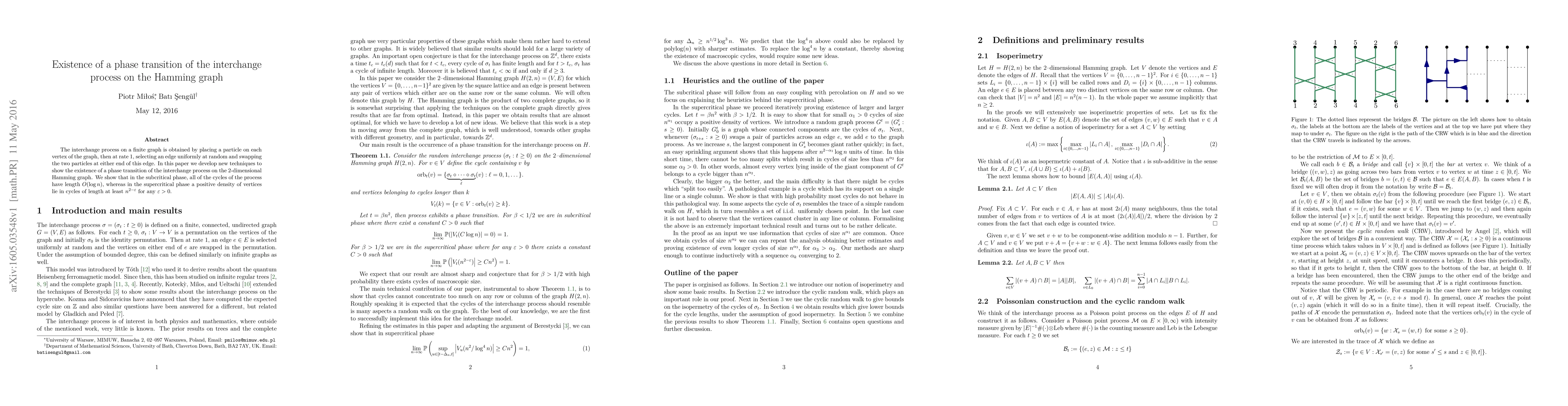This paper demonstrates a phase transition in the interchange process on the 2-dimensional Hamming graph, showing that cycles are short in the subcritical phase but become significantly longer in the supercritical phase, with a positive density of vertices in cycles of length $n^{2-\varepsilon}$.