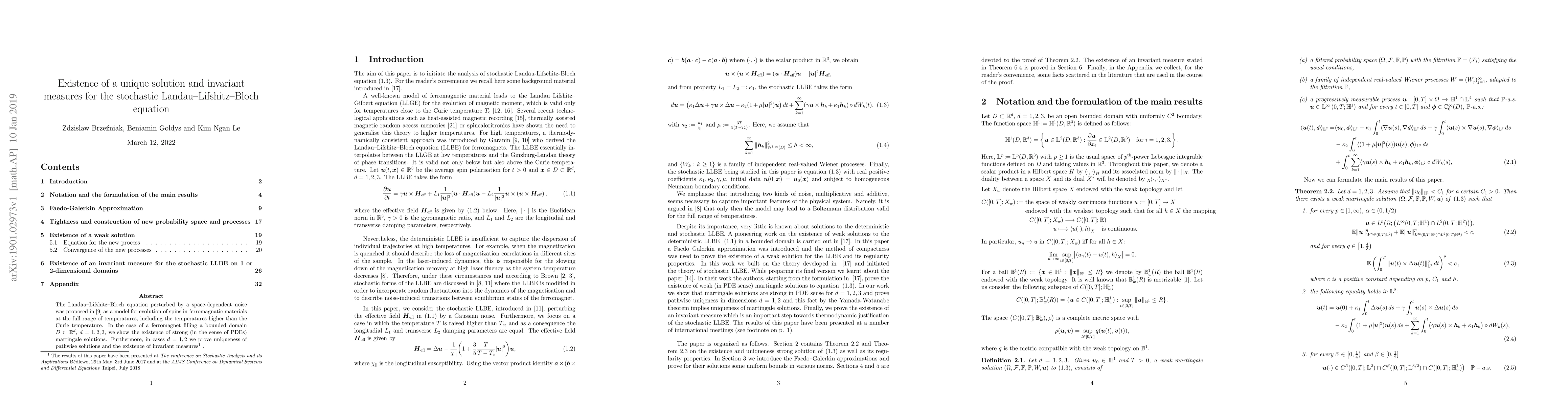 Researchers have shown the existence of unique solutions to a stochastic model for ferromagnetic materials, confirming their behavior in various temperature ranges. In certain dimensions, they also prove the uniqueness of pathwise solutions and the existence of invariant measures.
