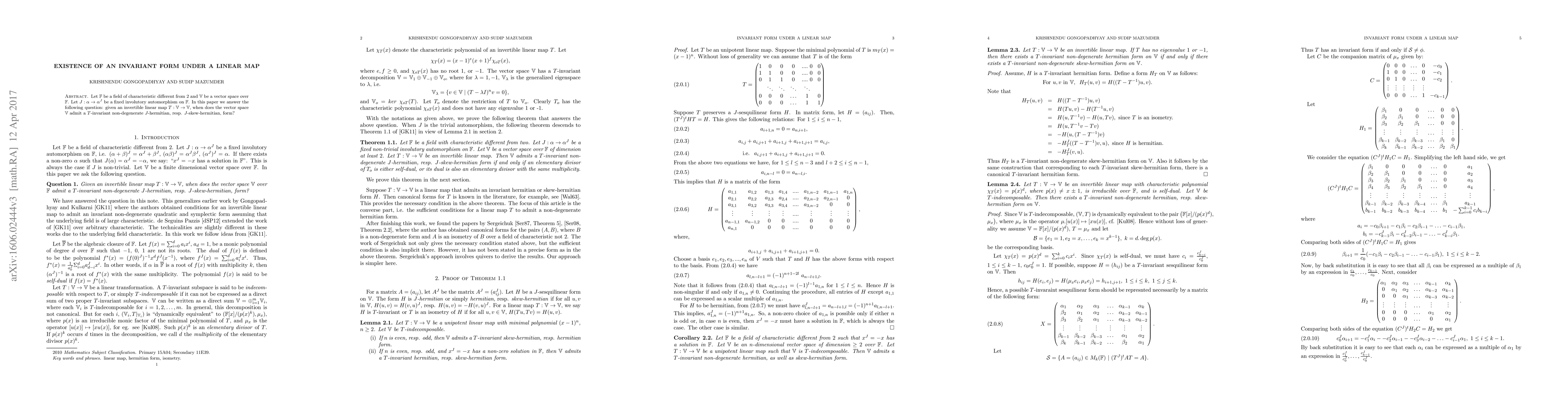Let $\F$ be a field of characteristic different from $2$ and $\V$ be a vector space over $\F$. Let $J: \alpha \to \alpha^J$ be a fixed involutory automorphism on $\F$. In this paper we answer the following question: given an invertible linear map $T: \V \to \V$, when does the vector space $\V$ admit a $T$-invariant non-degenerate $J$-hermitian, resp. $J$-skew-hermitian, form?