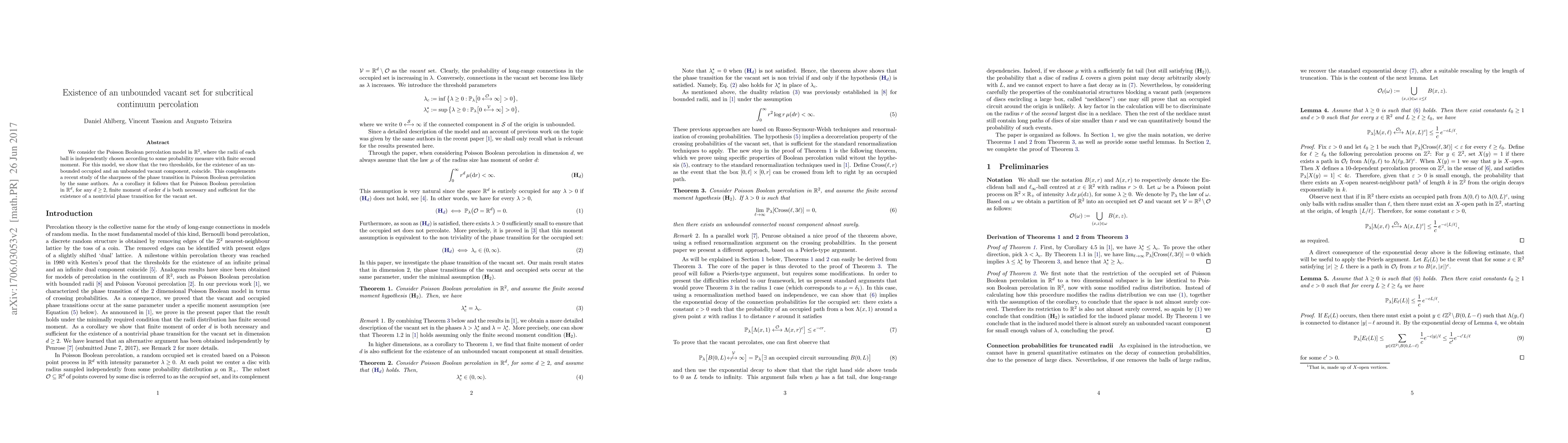 This paper demonstrates that in the Poisson Boolean percolation model in $\mathbb{R}^2$, the thresholds for the existence of unbounded occupied and vacant components are the same. It concludes that a finite moment of order $d$ is necessary and sufficient for the existence of a nontrivial phase transition in the vacant set for any $d\ge2$.