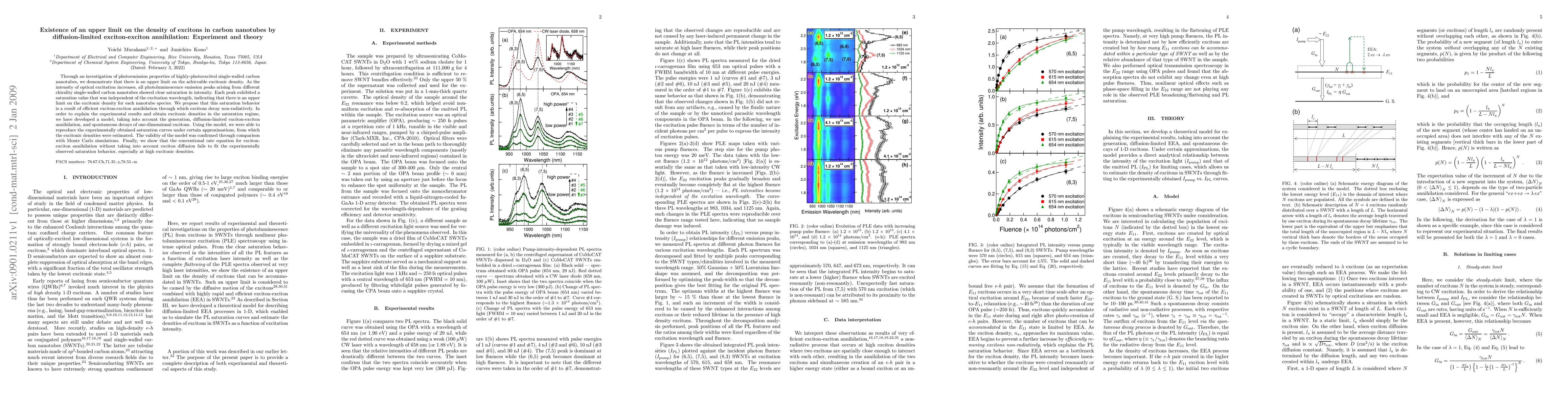 The study reveals an upper limit on excitonic density in carbon nanotubes, with photoluminescence saturation observed at high excitation intensities. A developed model, incorporating diffusion-limited exciton-exciton annihilation and spontaneous decay, successfully reproduces these saturation curves and estimates excitonic densities.