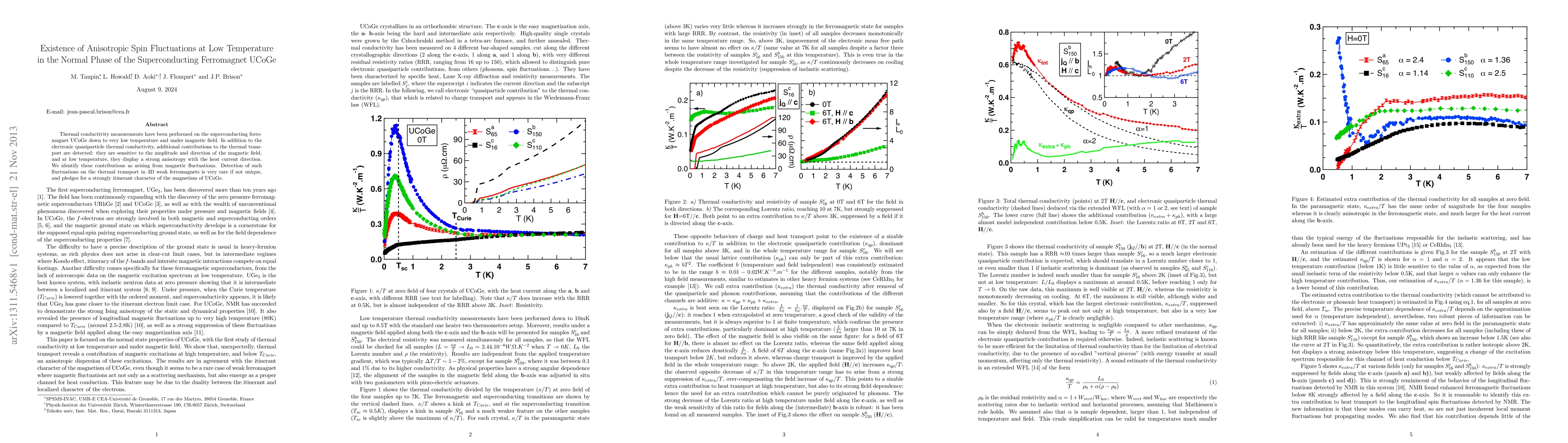 Summary: Thermal conductivity measurements on UCoGe reveal anisotropic spin fluctuations at low temperatures, indicating a strongly itinerant magnetic character. These fluctuations significantly affect thermal transport, especially under magnetic fields, marking a rare observation in 3D weak ferromagnets.