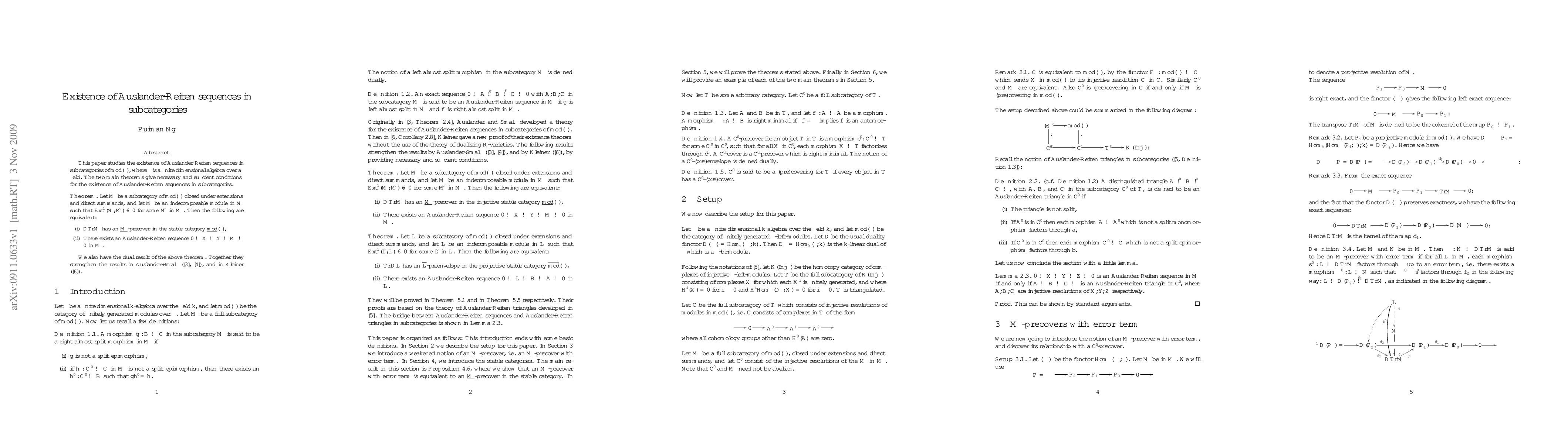 This paper investigates the existence of Auslander-Reiten sequences in subcategories of mod A, establishing necessary and sufficient conditions for their presence. It finds equivalence between the existence of precovers in the stable category and the presence of Auslander-Reiten sequences in specific subcategories.