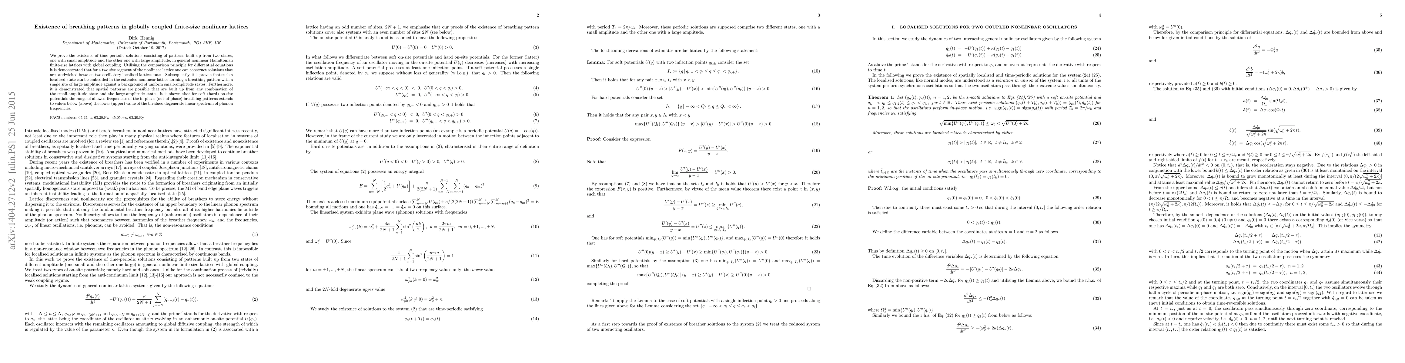 Researchers prove the existence of breathing patterns in non-linear lattices with global coupling, showing that small-amplitude states can oscillate against a background of large-amplitude states.