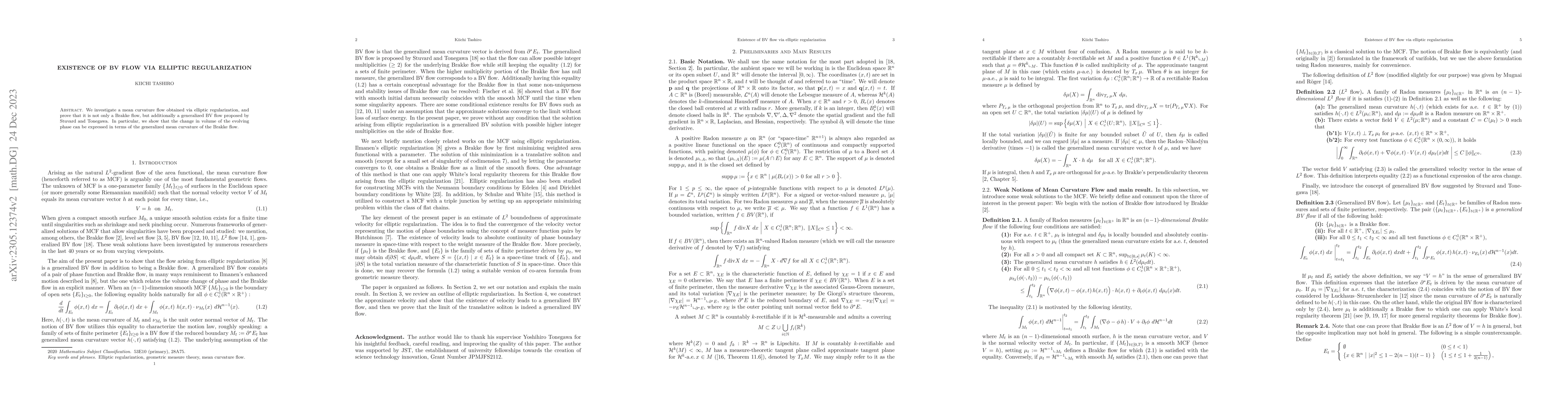 This paper proves that a mean curvature flow obtained through elliptic regularization is a generalized BV flow, demonstrating that the evolving phase's volume change correlates with the generalized mean curvature of the Brakke flow.