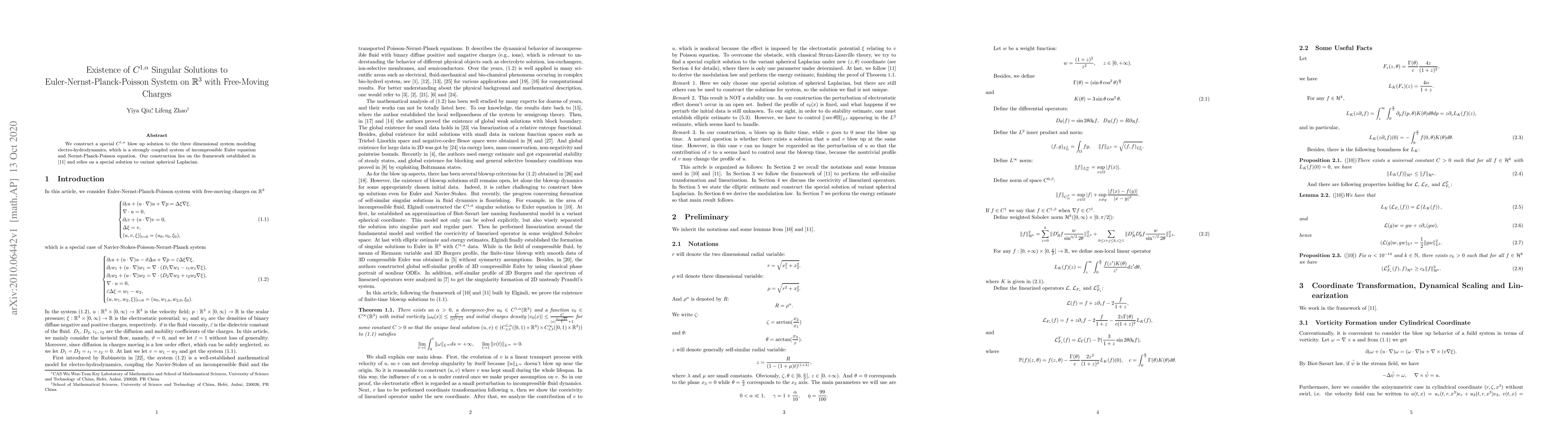 We construct a special $C^{1,\alpha}$ blow up solution to the three dimensional system modeling electro-hydrodynamics, which is strongly coupled with incompressible Euler equation and Nernst-Planck-Poisson equation. Our construction lies on the framework established in Elgindi [11] and relies on a special solution to variant spherical Laplacian.