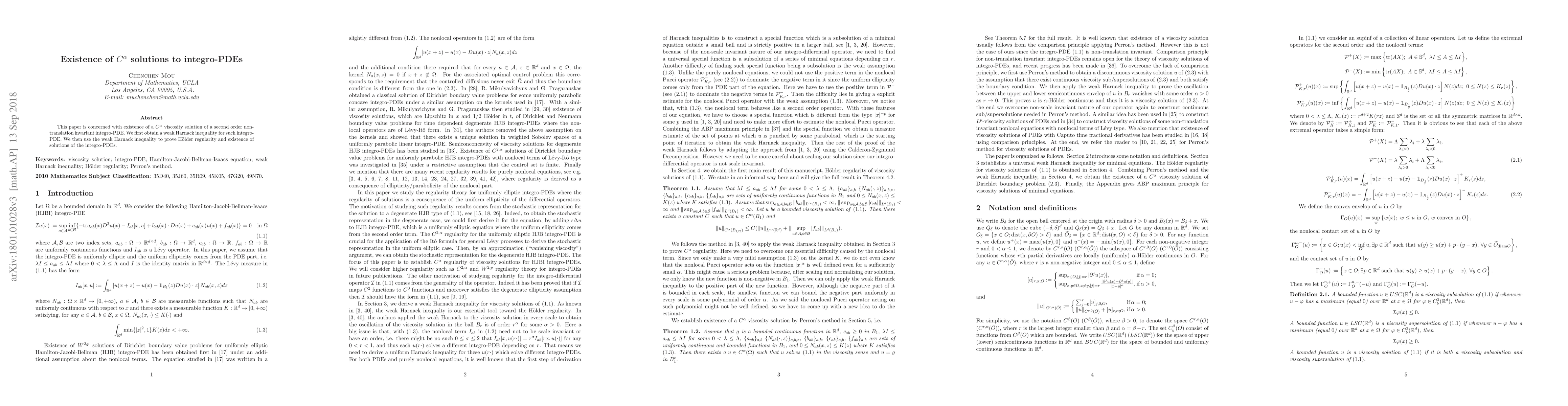 This paper is concerned with existence of a $C^{\alpha}$ viscosity solution of a second order non-translation invariant integro-PDE. We first obtain a weak Harnack inequality for such integro-PDE. We then use the weak Harnack inequality to prove H\"older regularity and existence of solutions of the integro-PDEs.