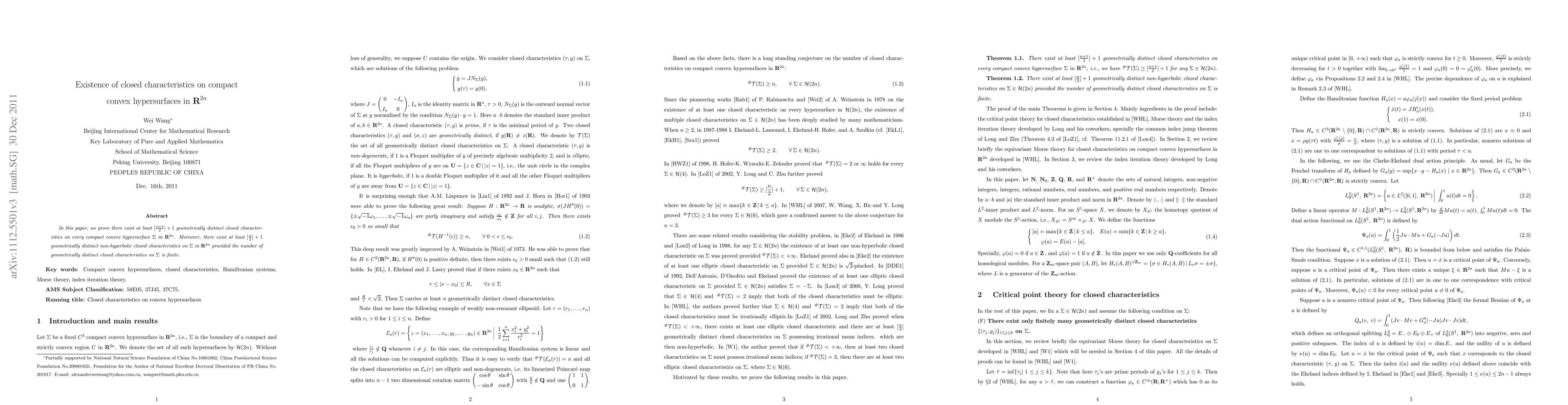 This research paper proves that compact convex hypersurfaces in R^{2n} have a minimum of [n/2 + 1] distinct closed characteristics with at least half being non-hyperbolic.