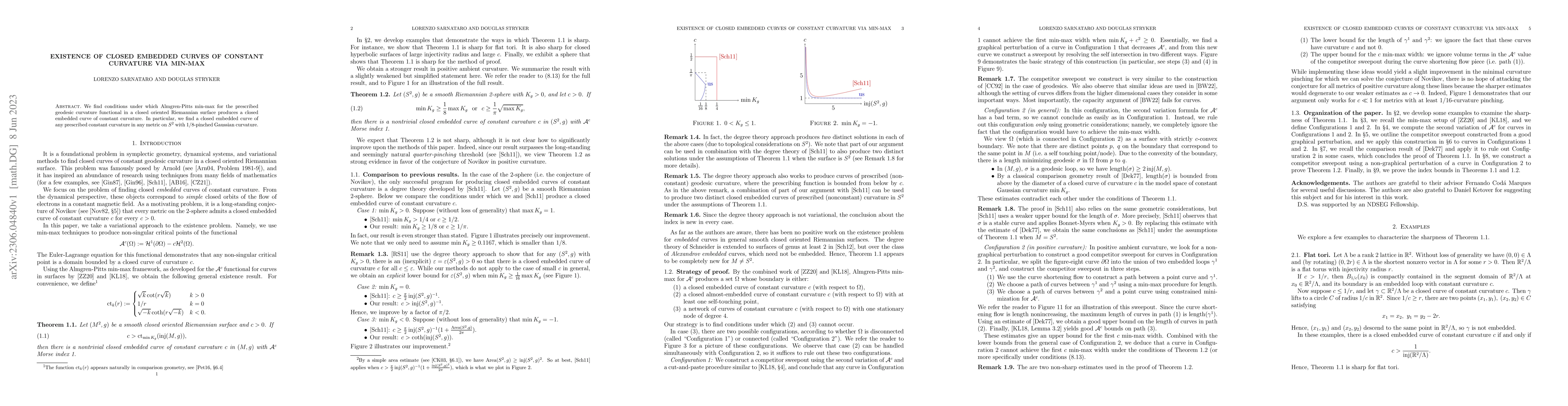 This paper establishes conditions for the Almgren-Pitts min-max method to yield closed embedded curves of constant curvature on a closed oriented Riemannian surface, specifically finding such curves in any metric on $S^2$ with $1/8$-pinched Gaussian curvature.
