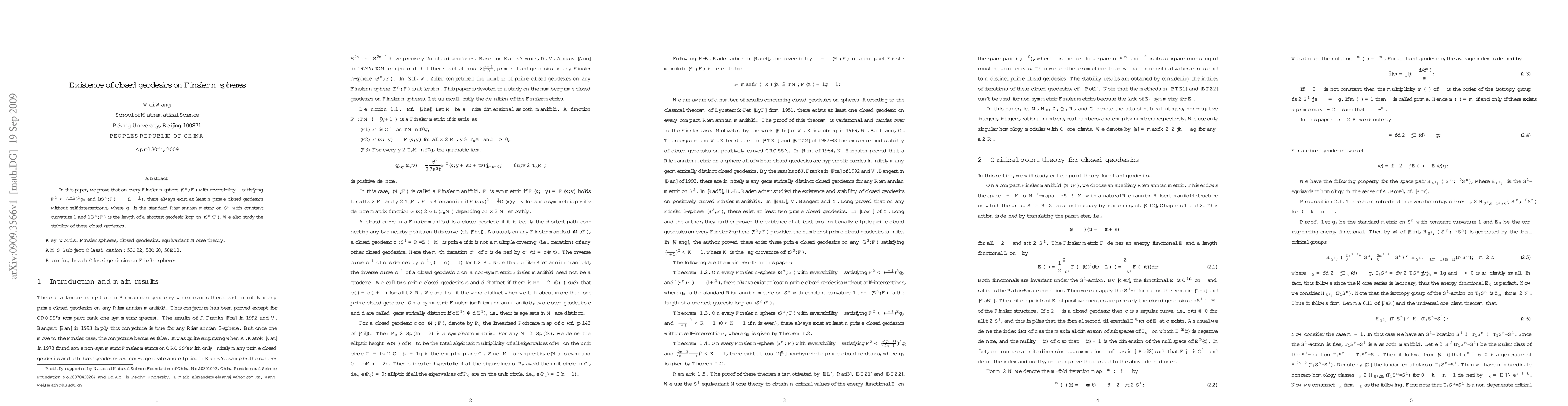 This paper demonstrates the existence of at least $n$ prime, non-intersecting closed geodesics on Finsler $n$-spheres under specific reversibility conditions, and examines the stability of these geodesics.
