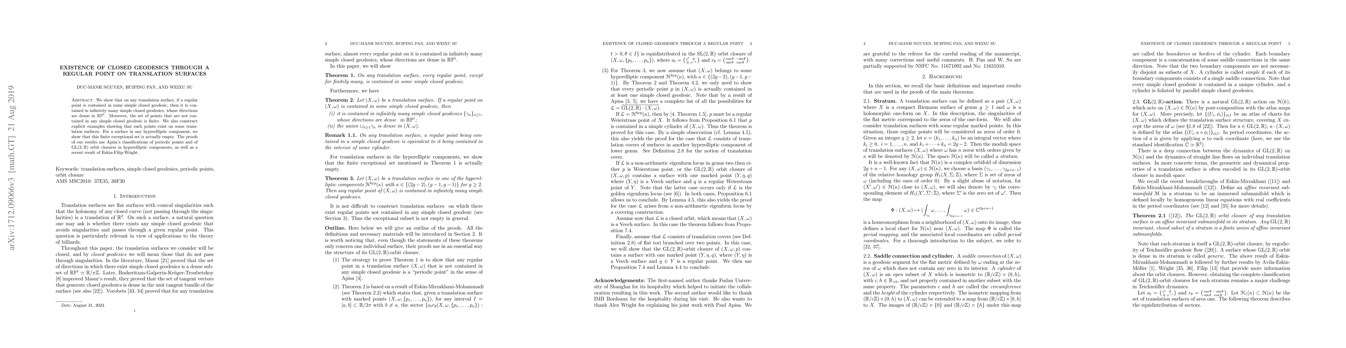 This paper demonstrates that on any translation surface, a regular point within a simple closed geodesic is part of infinitely many such geodesics, with their directions densely covering the unit circle. It also proves that the set of points not on any simple closed geodesic is finite, with this set being empty for hyperelliptic components. The results rely on classifications of periodic points and orbit closures, as well as a recent theorem by Eskin-Filip-Wright.