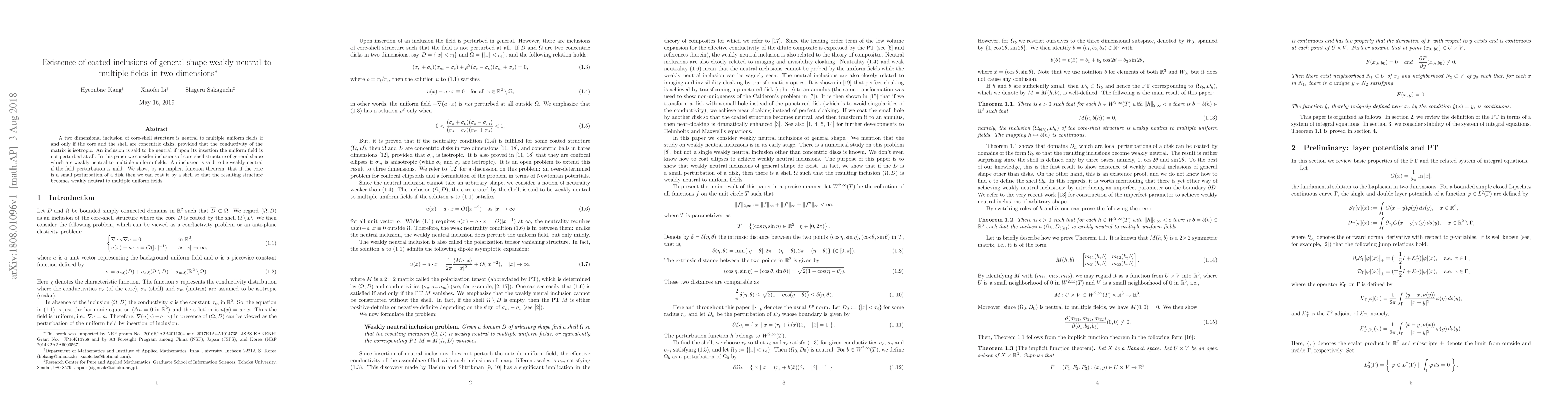 This paper investigates the existence of core-shell inclusions of general shape that are weakly neutral to multiple uniform fields in two dimensions. It demonstrates that a small perturbation of a disk can be coated with a shell to achieve weak neutrality, under the condition that the matrix has isotropic conductivity.