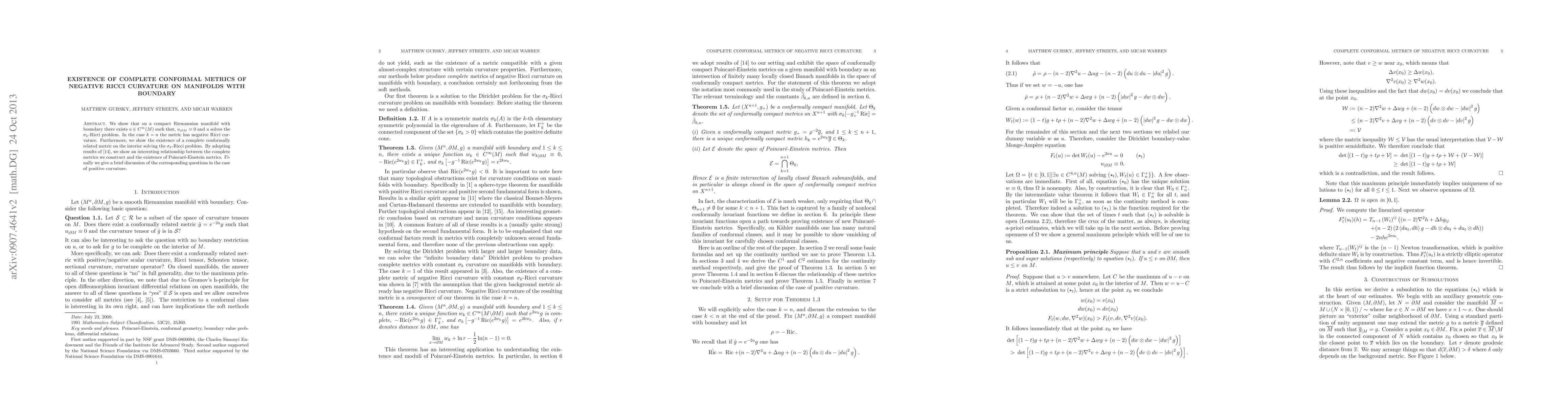 This paper demonstrates the existence of complete conformal metrics with negative Ricci curvature on compact Riemannian manifolds with boundary by solving the $\sigma_k$-Ricci problem, and explores a connection to Poincaré-Einstein metrics. It also briefly discusses implications for metrics with positive curvature.
