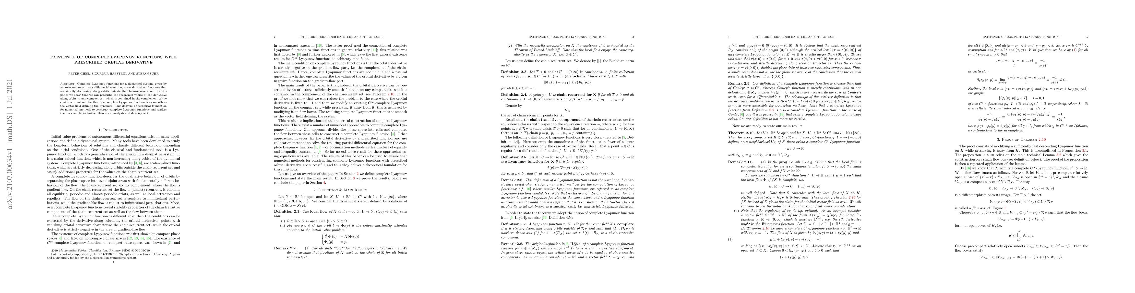 This paper demonstrates how to prescribe a Lyapunov function with a specific derivative along orbits in a compact set outside the chain-recurrent set of an autonomous differential equation, enabling theoretical analysis and numerical methods for constructing complete Lyapunov functions.