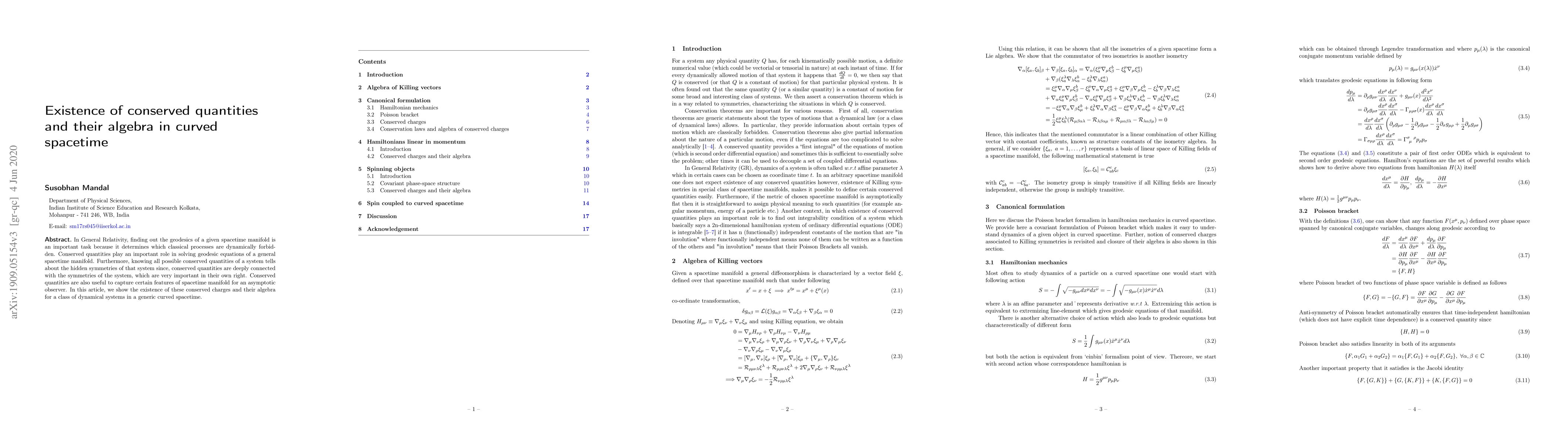 This paper investigates the existence and algebra of conserved quantities in the context of General Relativity, demonstrating their significance in solving geodesic equations and revealing hidden symmetries of dynamical systems in curved spacetime. The study focuses on a class of dynamical systems to illustrate these conserved charges and their algebraic properties.