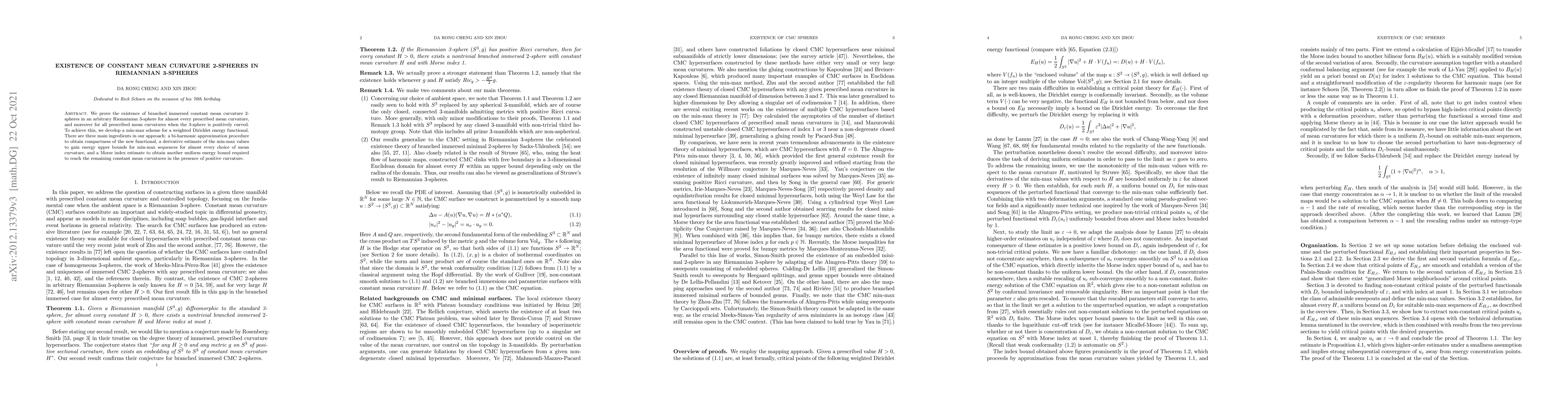 Researchers prove the existence of constant mean curvature 2-spheres in Riemannian 3-spheres under specific conditions, using a min-max scheme for a weighted Dirichlet energy functional.