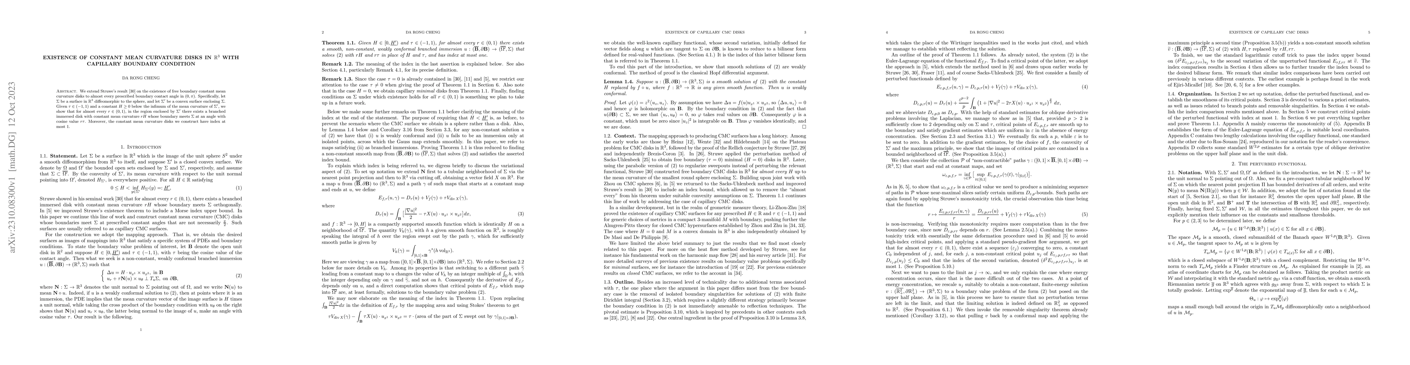 We extend Struwe's result (Acta Math., 1988) on the existence of free boundary constant mean curvature disks to almost every prescribed boundary contact angle in $(0, \pi)$. Specifically, let $\Sigma$ be a surface in $\mathbb{R}^3$ diffeomorphic to the sphere, and let $\Sigma'$ be a convex surface enclosing $\Sigma$. Given $\tau \in (-1, 1)$ and a constant $H \geq 0$ below the infimum of the mean curvature of $\Sigma'$, we show that for almost every $r \in (0, 1)$, in the region enclosed by $\Sigma'$ there exists a branched immersed disk with constant mean curvature $rH$ whose boundary meets $\Sigma$ at an angle with cosine value $r\tau$. Moreover, the constant mean curvature disks we construct have index at most $1$.