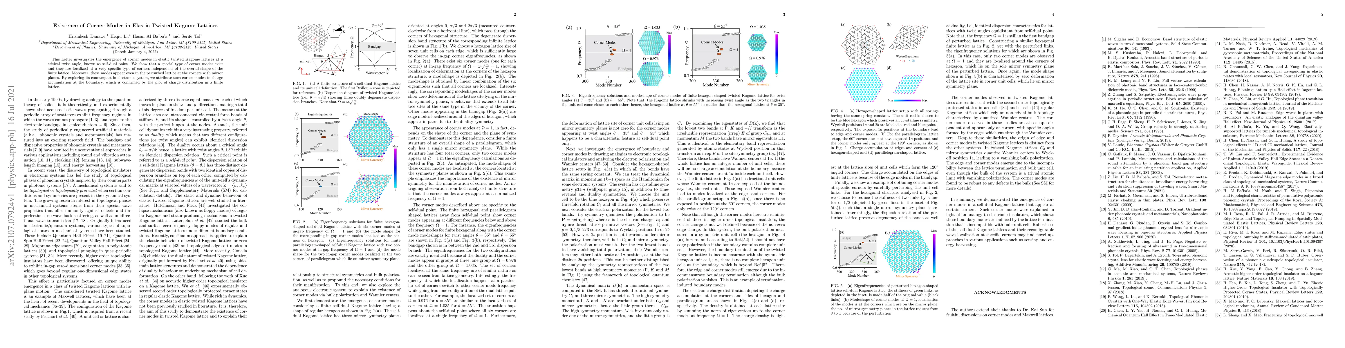 This research reveals the existence of localized corner modes in elastic twisted Kagome lattices at a critical twist angle, termed the self-dual point, independent of the lattice's overall shape. The study also demonstrates that these modes persist even in perturbed lattices with mirror planes, attributing their origin to charge accumulation at the boundary.