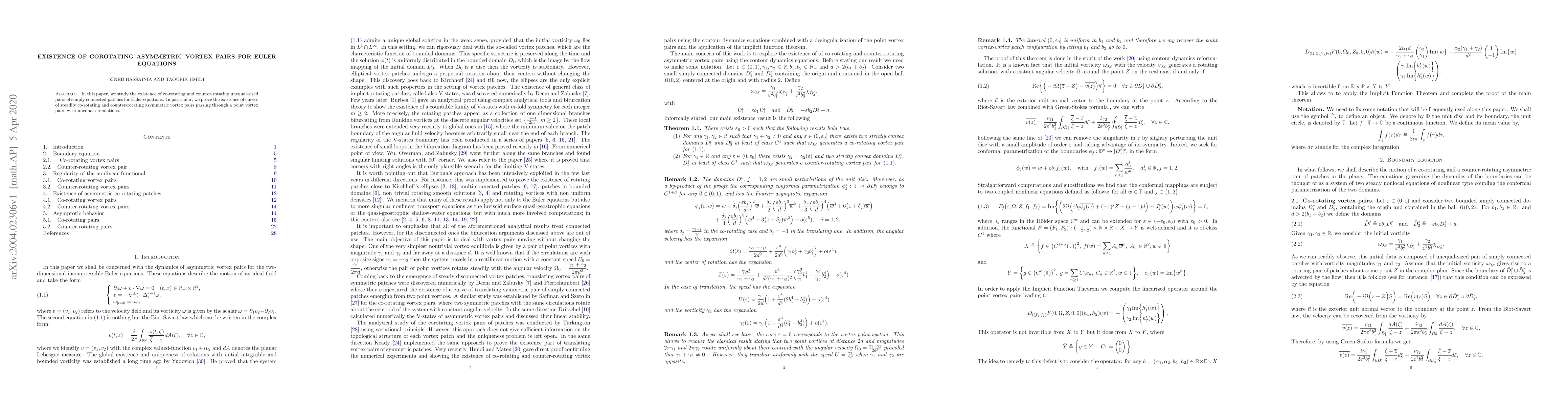 This paper proves the existence of co-rotating and counter-rotating asymmetric vortex pairs for the Euler equations, demonstrating curves of such pairs passing through unequal circulation point vortex pairs. The study focuses on simply connected patches with unequal sizes.