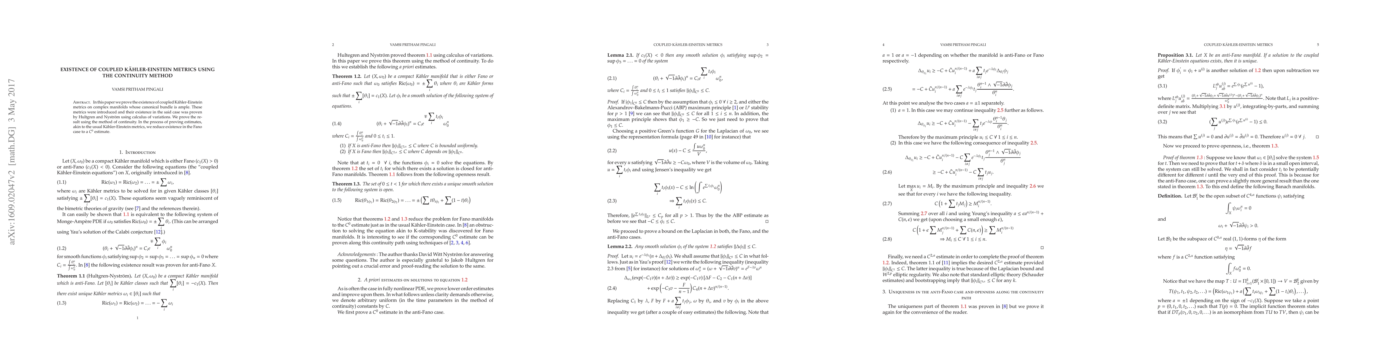 This paper establishes the existence of coupled Kähler-Einstein metrics on complex manifolds with ample canonical bundles, using the continuity method. It builds on previous work by Hultgren and Nyström, providing a new proof approach and reducing the problem to a C^0 estimate.