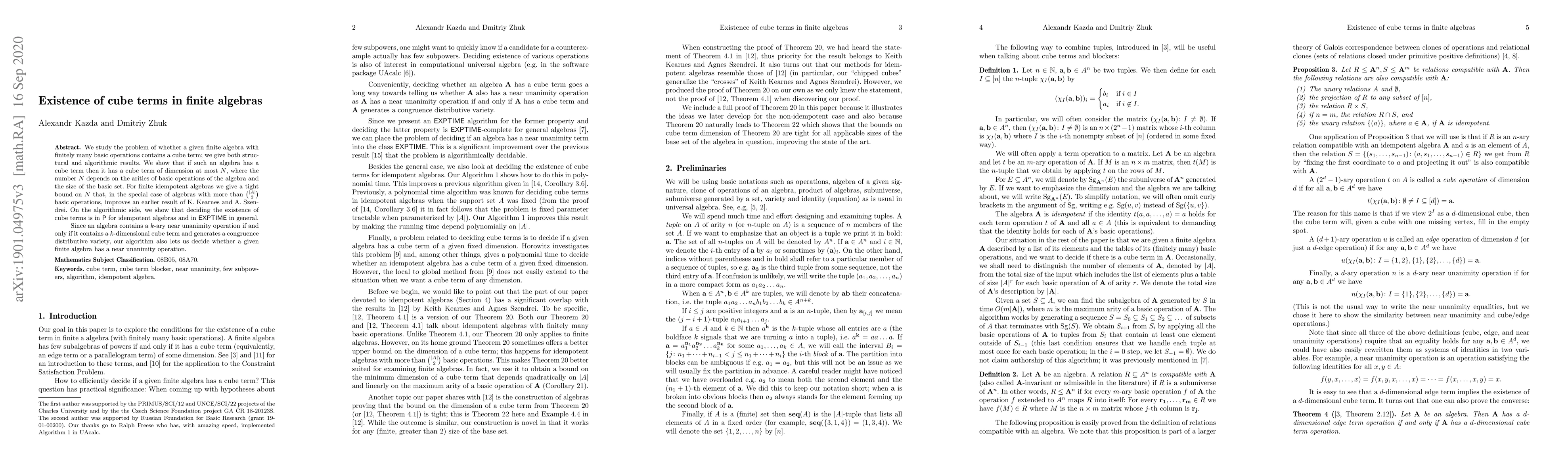 We study the problem of whether a given finite algebra with finitely many basic operations contains a cube term; we give both structural and algorithmic results. We show that if such an algebra has a cube term then it has a cube term of dimension at most $N$, where the number $N$ depends on the arities of basic operations of the algebra and the size of the basic set. For finite idempotent algebras we give a tight bound on $N$ that, in the special case of algebras with more than $\binom{|A|}2$ basic operations, improves an earlier result of K. Kearnes and A. Szendrei. On the algorithmic side, we show that deciding the existence of cube terms is in P for idempotent algebras and in EXPTIME in general. Since an algebra contains a $k$-ary near unanimity operation if and only if it contains a $k$-dimensional cube term and generates a congruence distributive variety, our algorithm also lets us decide whether a given finite algebra has a near unanimity operation.