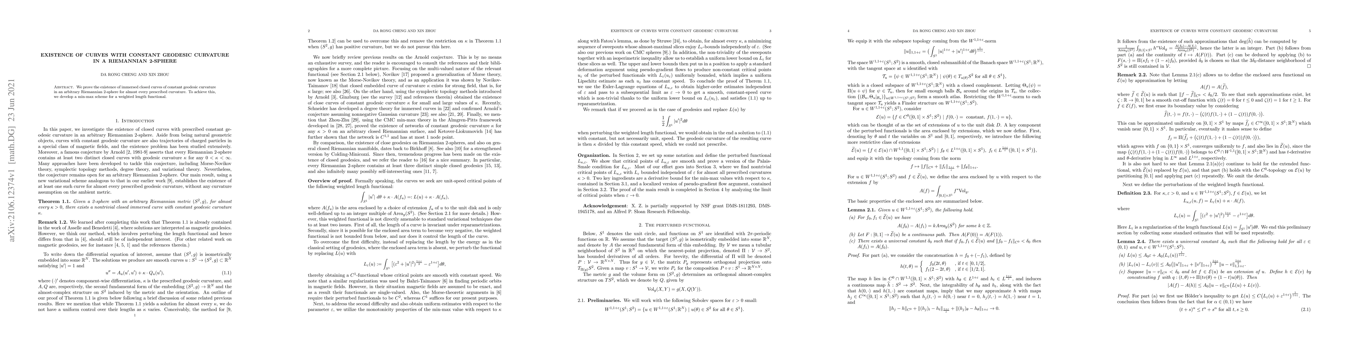 Summary: The paper proves the existence of immersed closed curves with constant geodesic curvature in any Riemannian 2-sphere for nearly all specified curvatures. This is achieved through the development of a min-max scheme for a weighted length functional.