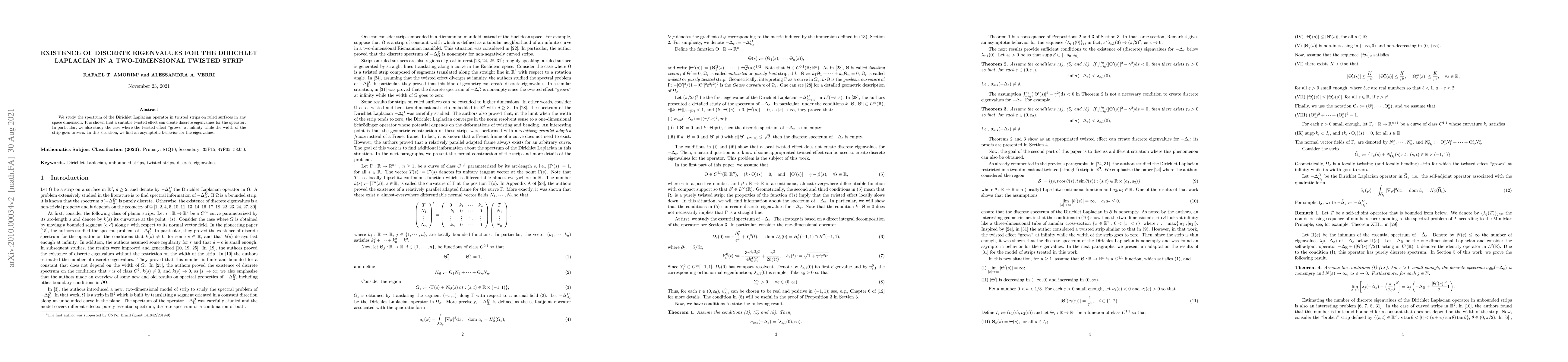This paper investigates the spectrum of the Dirichlet Laplacian in a two-dimensional twisted strip, demonstrating that local twisting can generate discrete eigenvalues. It also examines the asymptotic behavior of these eigenvalues as the strip's width diminishes and the twisting effect increases indefinitely.