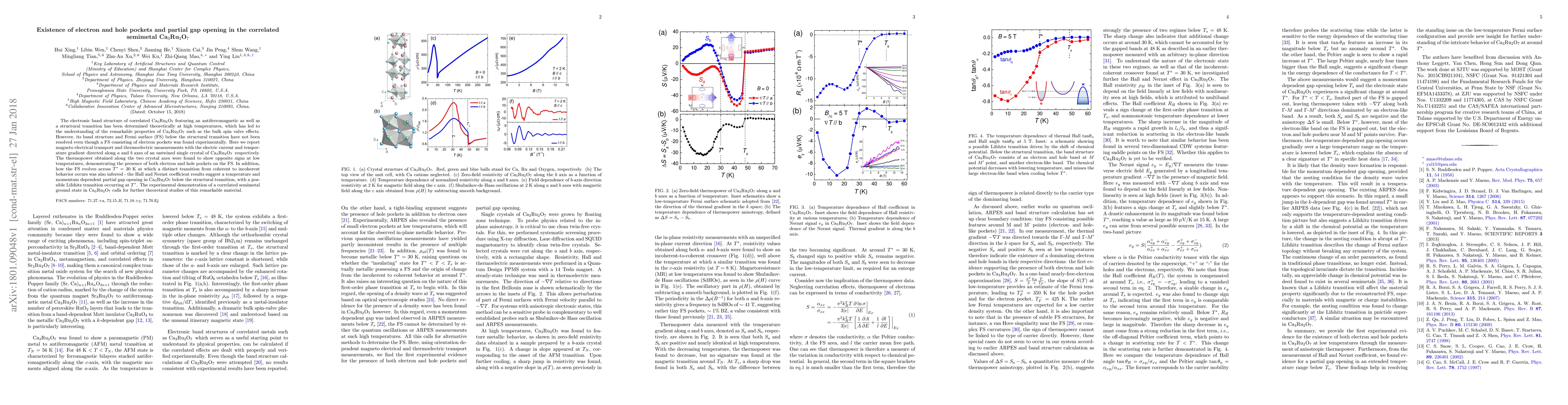 This study reveals that Ca3Ru2O7 hosts both electron and hole pockets in its Fermi surface, with evidence of partial gap opening below 30 K, indicating a complex correlated semimetal state. These findings are based on magneto-electrical and thermoelectric measurements, shedding light on its electronic behavior across structural transitions.