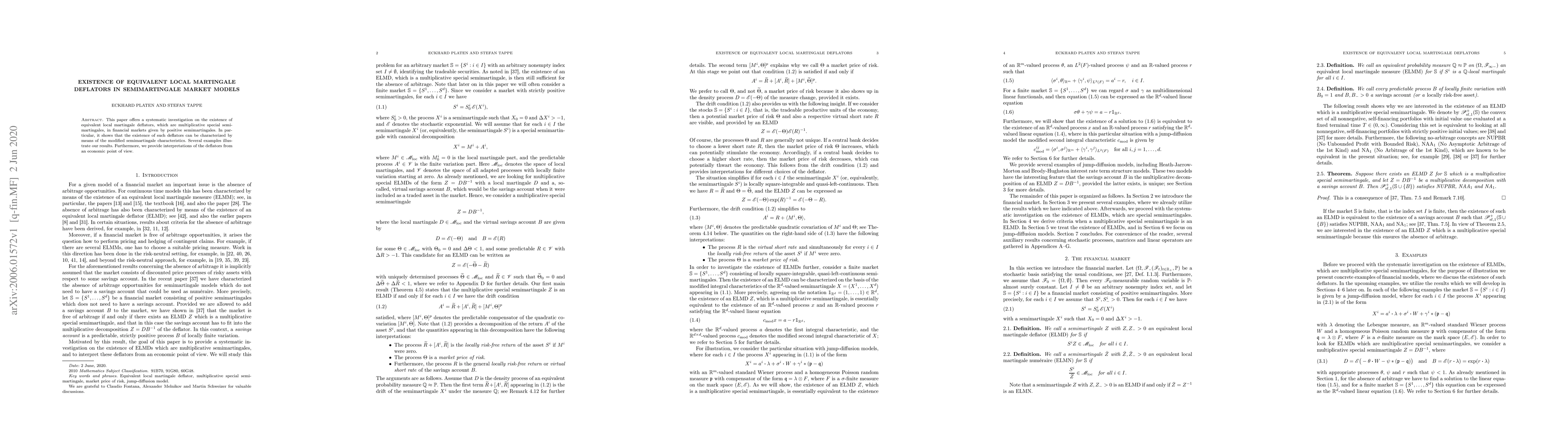 This paper investigates the existence of equivalent local martingale deflators in semimartingale market models, demonstrating their characterization through modified semimartingale characteristics. It also provides economic interpretations of these deflators and includes illustrative examples.