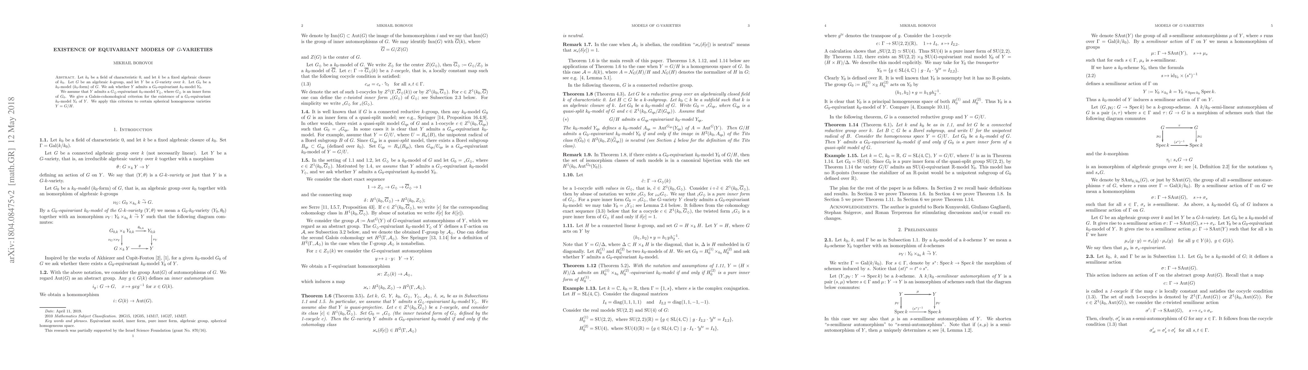 Let k_0 be a field of characteristic 0, and let k be a fixed algebraic closure of k_0. Let G be an algebraic k-group, and let Y be a G-variety over k. Let G_0 be a k_0 -model (k_0 -form) of G. We ask whether Y admits a G_0 -equivariant k_0 -model Y_0 of Y. We assume that Y admits a G_q -equivariant k_0 -model Y_q, where G_q is an inner form of G_0. We give a Galois-cohomological criterion for the existence of a G_0 -equivariant k_0 -model Y_0 of Y. We apply this criterion to spherical homogeneous varieties Y=G/H.