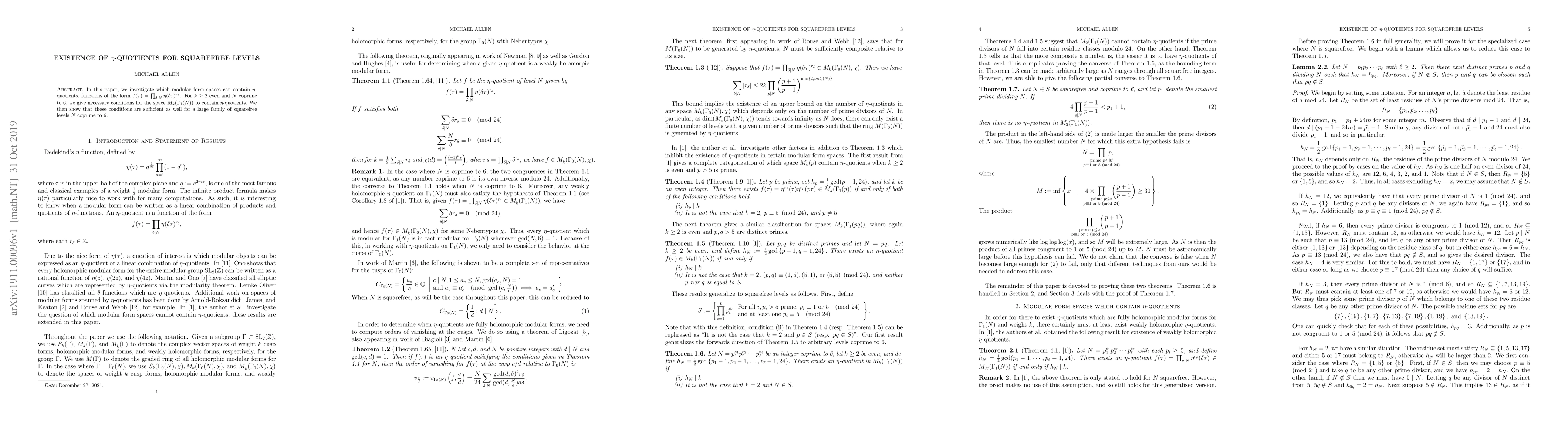 This paper identifies necessary and sufficient conditions for the modular form space $M_k(\Gamma_1(N))$ to contain $\eta$-quotients, proving these conditions hold for many squarefree levels $N$ coprime to 6. The study focuses on even integers $k \geq 2$.