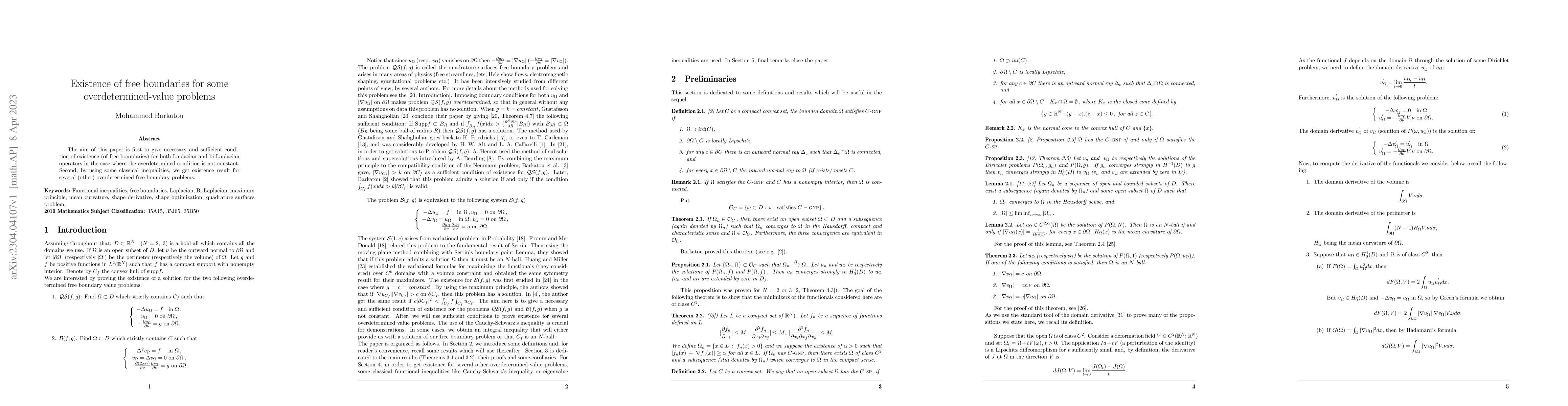 This paper establishes necessary and sufficient conditions for the existence of free boundaries in overdetermined problems involving Laplacian and bi-Laplacian operators when the overdetermined condition varies. It also utilizes classical inequalities to demonstrate the existence of free boundaries in additional overdetermined problems.