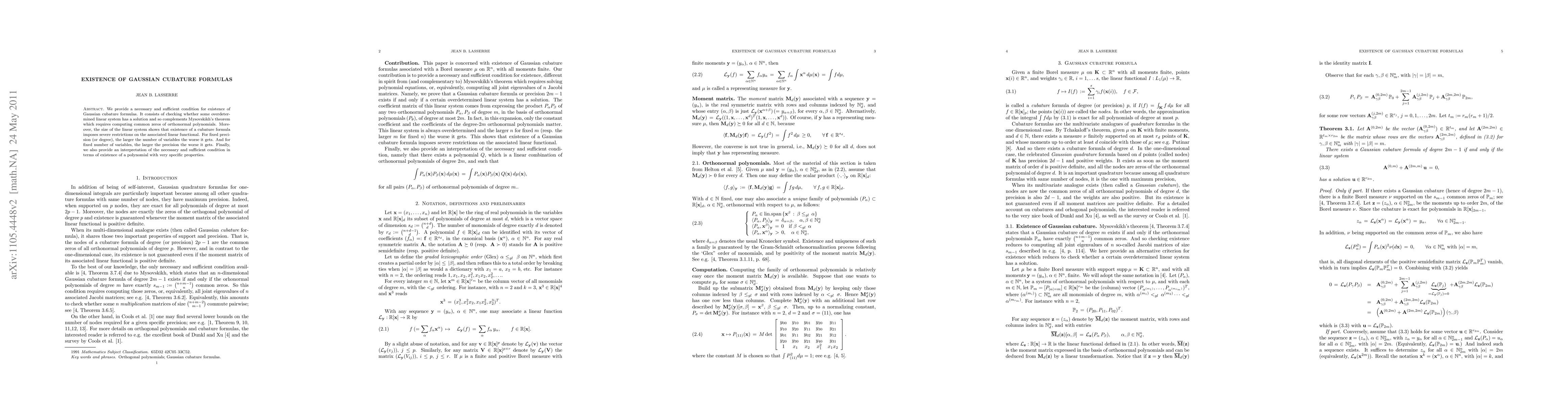 The research paper provides a condition for Gaussian cubature formulas to exist, linking it to the existence of a solution to an overdetermined linear system. Existence imposes restrictions on precision and variables, highlighting trade-offs between quality and computational complexity.