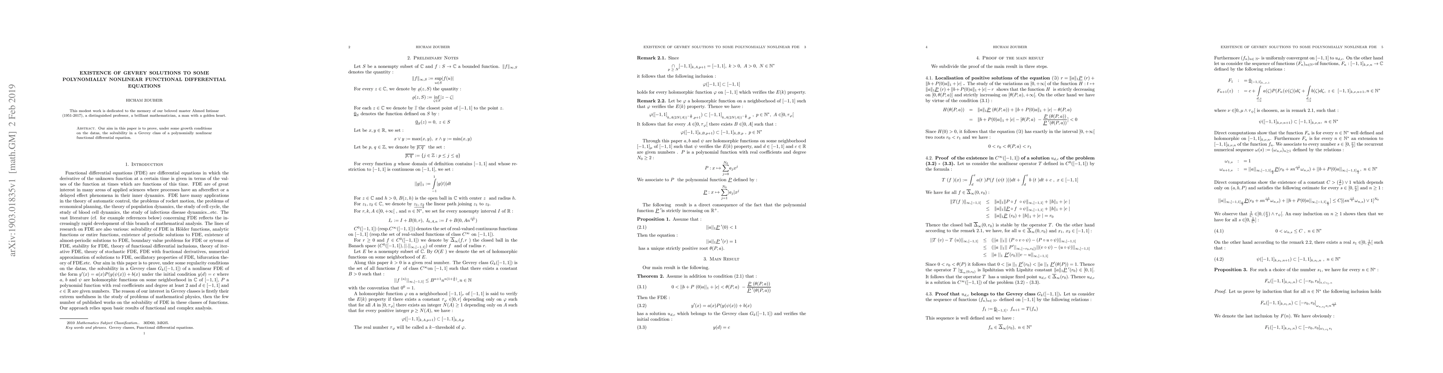 Summary: This paper establishes the existence of Gevrey solutions for polynomially nonlinear functional differential equations under specified growth conditions on the input data, thereby proving their solvability within the Gevrey class.