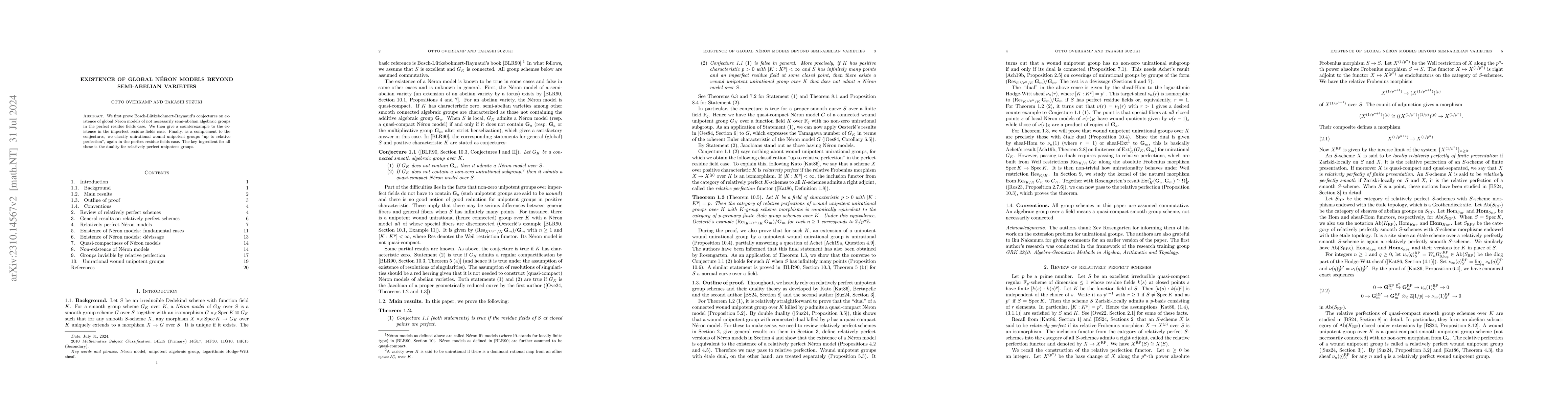 We first prove Bosch-L\"utkebohmert-Raynaud's conjectures on existence of global N\'eron models of not necessarily semi-abelian algebraic groups in the perfect residue fields case. We then give a counterexample to the existence in the imperfect residue fields case. Finally, as a compliment to the conjectures, we classify unirational wound unipotent groups "up to relative perfection", again in the perfect residue fields case. The key ingredient for all these is the duality for relatively perfect unipotent groups.