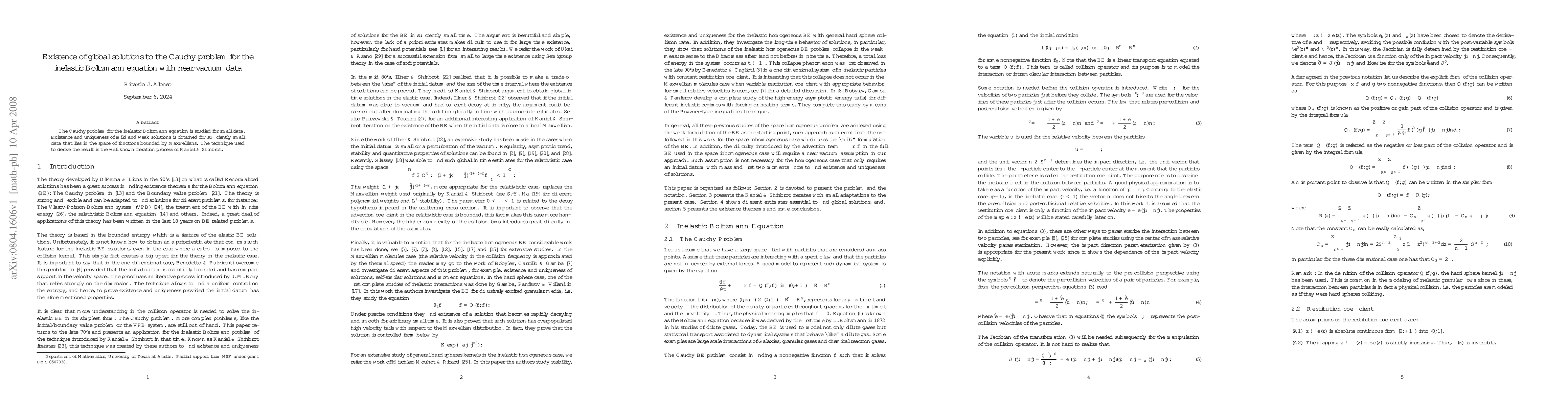 Summary: The research establishes the existence and uniqueness of both mild and weak solutions for the inelastic Boltzmann equation's Cauchy problem under near-vacuum conditions, using the iteration method developed by Kaniel and Shinbrot for small data bounded by Maxwellians.