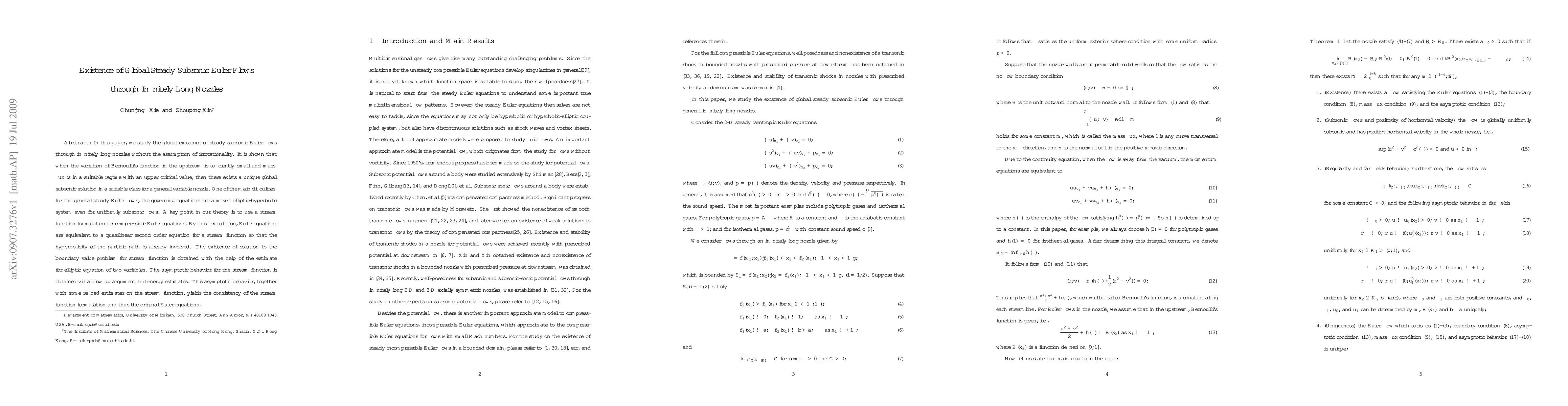 This paper investigates the global existence of steady subsonic Euler flows through infinitely long nozzles, without assuming irrotationality. It proves the existence of a unique global subsonic solution under certain conditions using a stream function formulation and boundary value problem estimates.