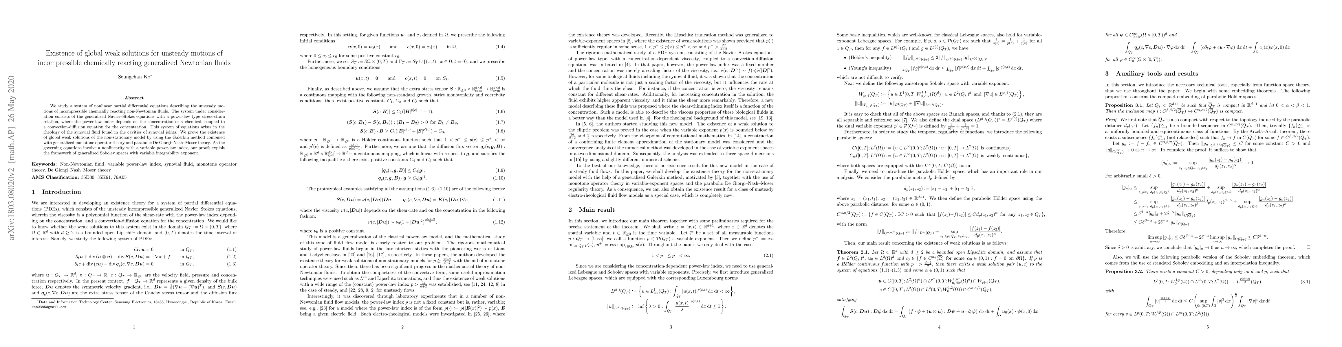 Researchers prove the existence of global weak solutions for unsteady motions of incompressible chemically reacting non-Newtonian fluids, a finding with implications for understanding rheology in synovial joints.