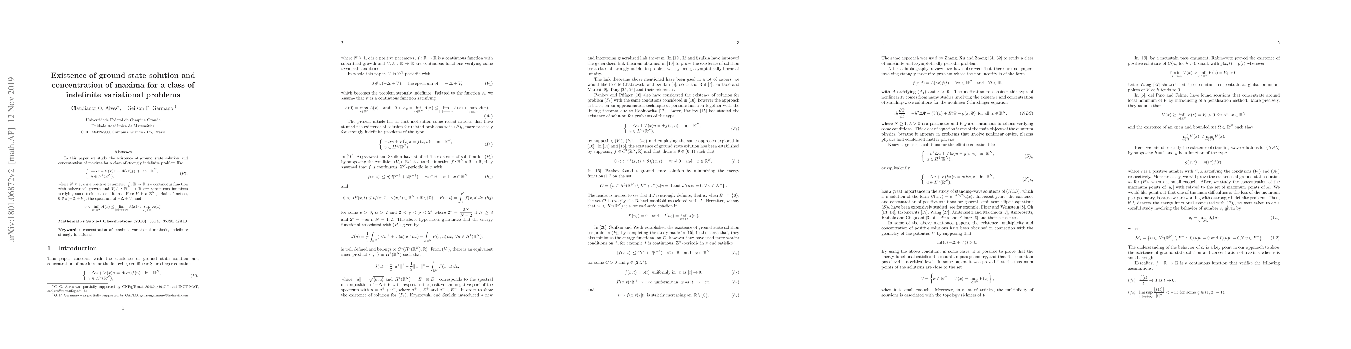 This research paper investigates the existence of ground state solutions and concentration of maxima for a class of strongly indefinite variational problems. It proves the existence of such solutions under certain conditions, including periodic potential and subcritical growth function.