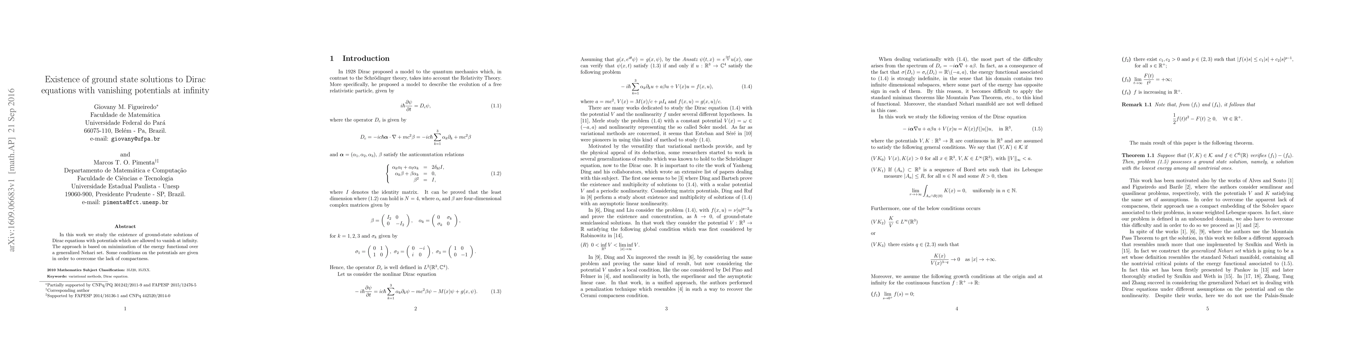 Summary: This paper investigates the existence of ground-state solutions for Dirac equations where potentials vanish at infinity, employing a minimization strategy over a generalized Nehari set to address the lack of compactness issues.
