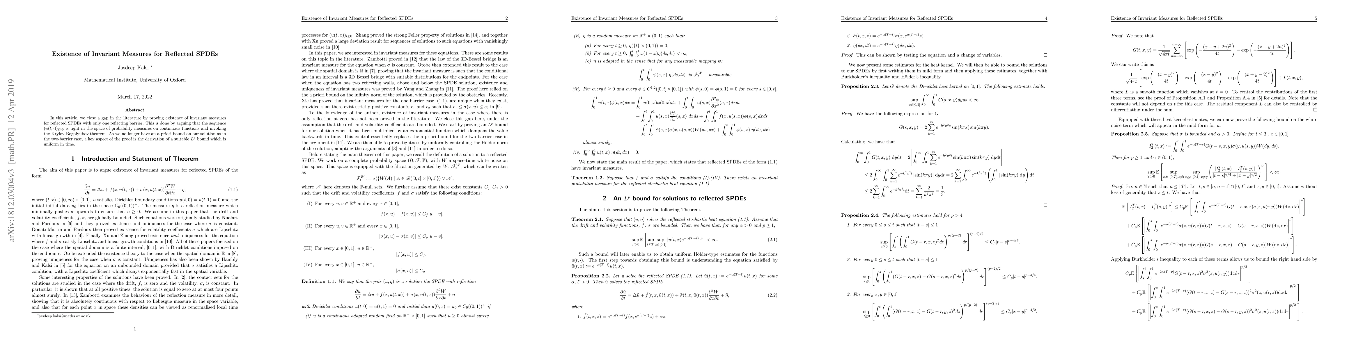This paper proves the existence of invariant measures for reflected stochastic partial differential equations (SPDEs) with a single reflecting barrier, using a combination of tightness and Krylov-Bogolyubov theorem arguments.