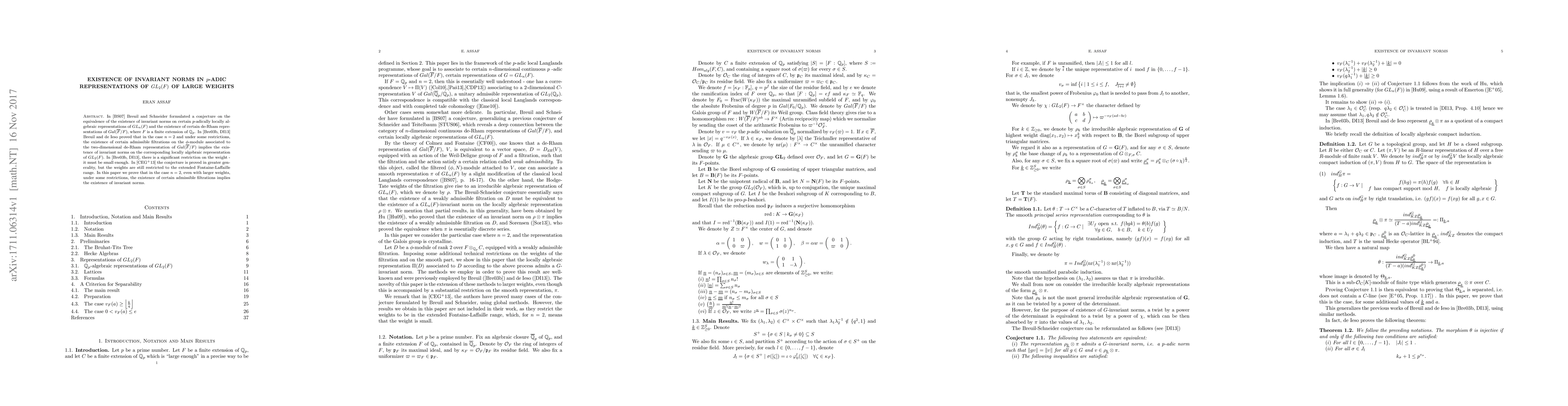 The paper proves that in $p$-adic representations of $GL_2(F)$ with large weights, the existence of certain admissible filtrations implies the existence of invariant norms, extending previous results for smaller weights.