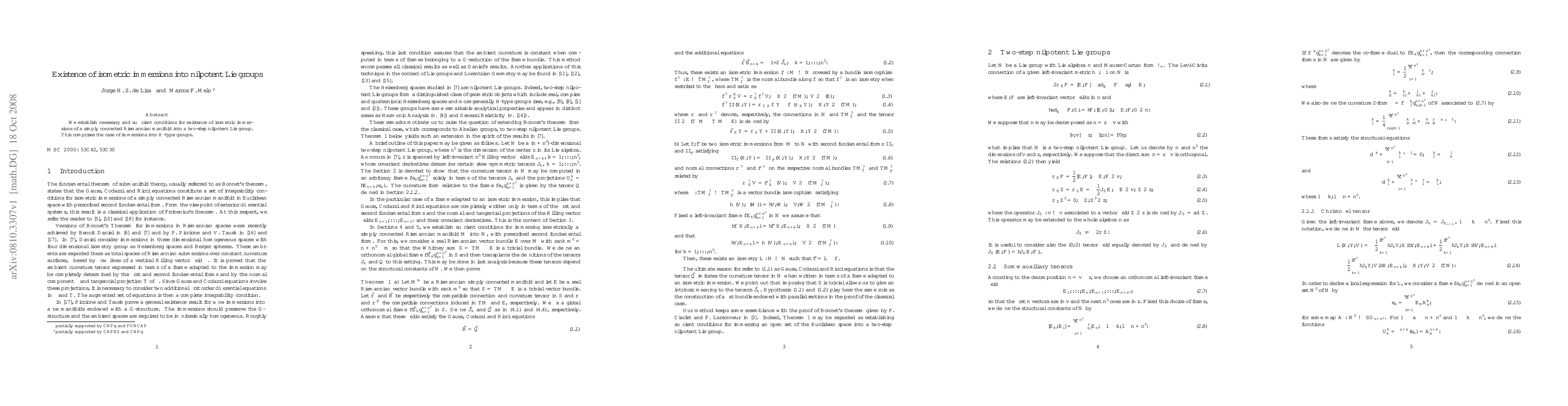 This paper provides necessary and sufficient conditions for the existence of isometric immersions of a simply connected Riemannian manifold into a two-step nilpotent Lie group, including $H$-type groups. The results offer a comprehensive framework for understanding such geometric embeddings.
