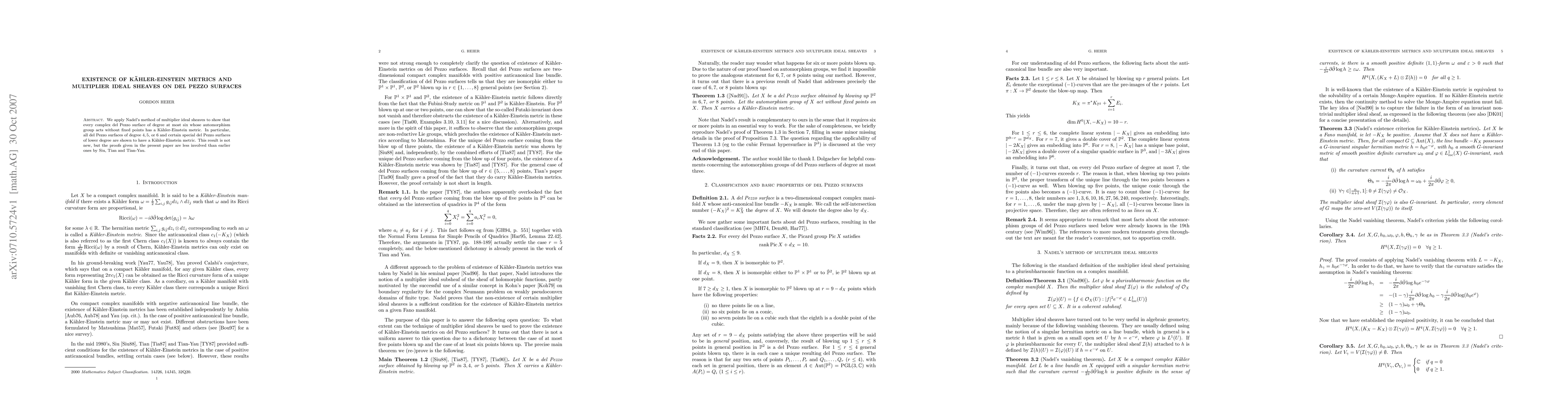 This paper utilizes Nadel's multiplier ideal sheaf method to demonstrate the existence of Kähler-Einstein metrics on complex del Pezzo surfaces of degree ≤ 6 with automorphism groups acting without fixed points, simplifying previous proofs by Siu, Tian, and Tian-Yau.