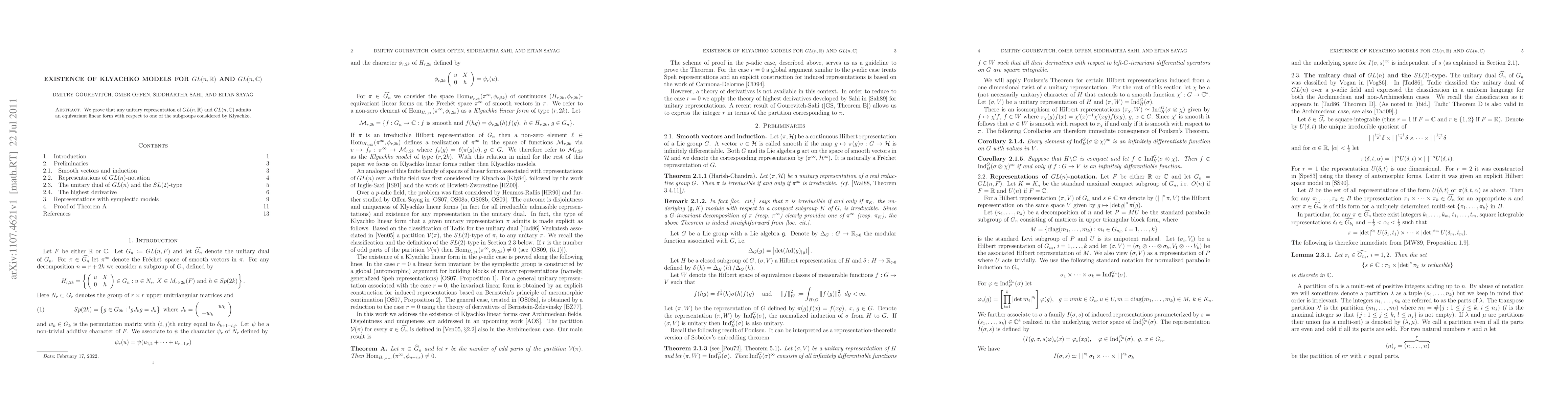 Summary: This paper proves the existence of Klyachko models for the general linear groups GL(n;R) and GL(n;C) by showing that any unitary representation of these groups has an equivariant linear form relative to Klyachko's subgroups.